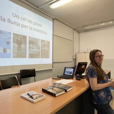 El 30 de maig l’escriptora i professora Carme Martí va tornar a l’Institut per fer una xerrada als alumnes de 4t d’ESO i parlar-los sobre la seva obra Un cel de plom, una de les que els alumnes ja fa uns quants anys que llegeixen dins la matèria de Llengua catalana i literatura a 4t.
