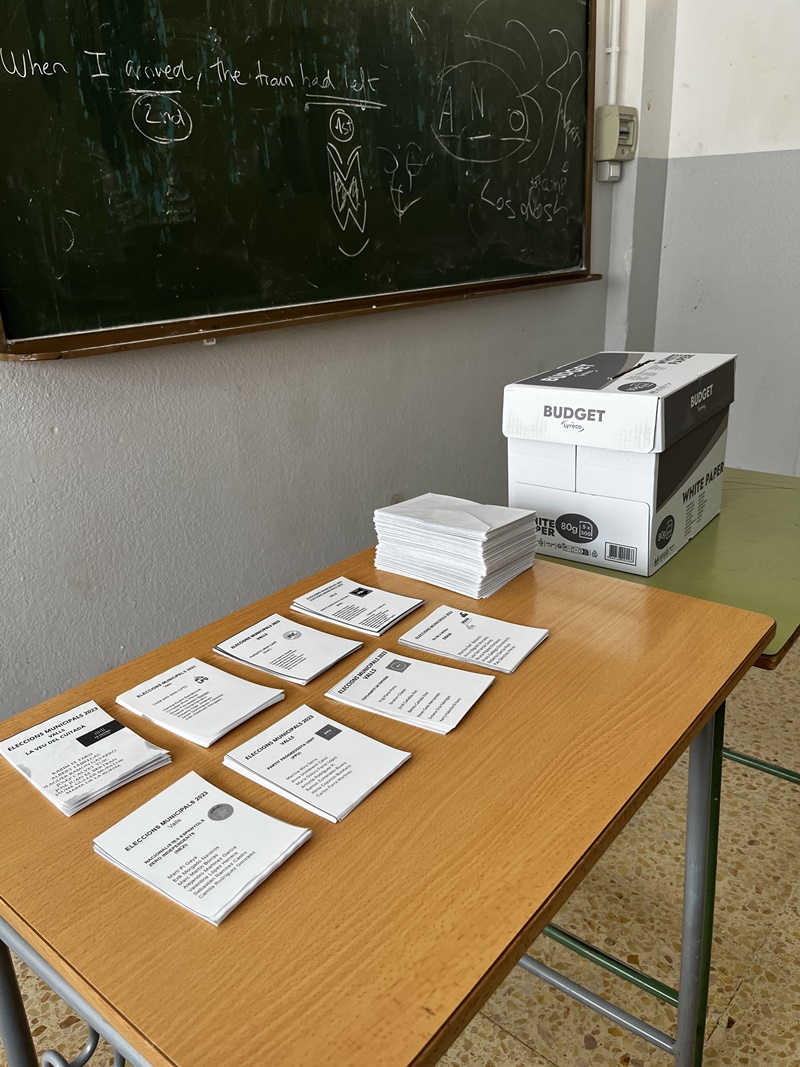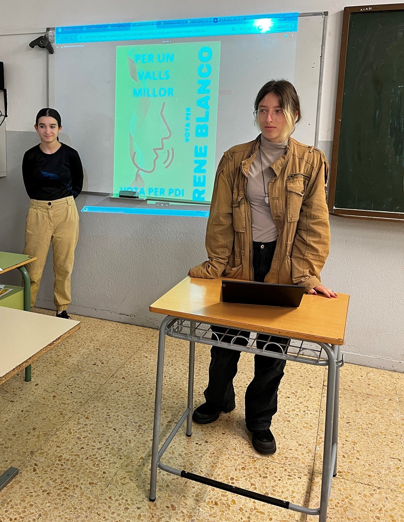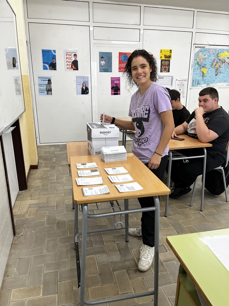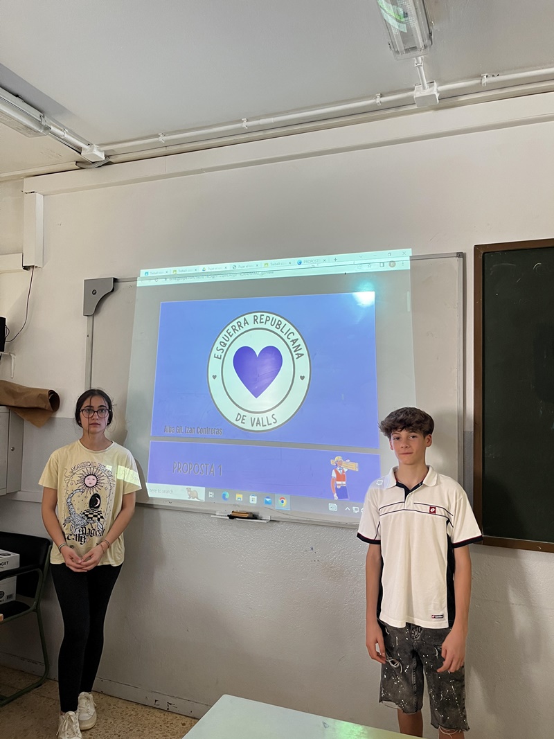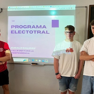 A la matèria de Socials de 3r ESO s’ha fet un projecte sobre els partits polítics i les eleccions coincidint amb la campanya electoral de les municipals. En grups han creat partits polítics, i després de dissenyar la imatge del partit, fer-ne el programa electoral, un cartell i la papereta per votar, s’ha fet un simulacre d’eleccions a cada classe que ha servit per triar l’Ajuntament que ha de governar cada grup-classe.