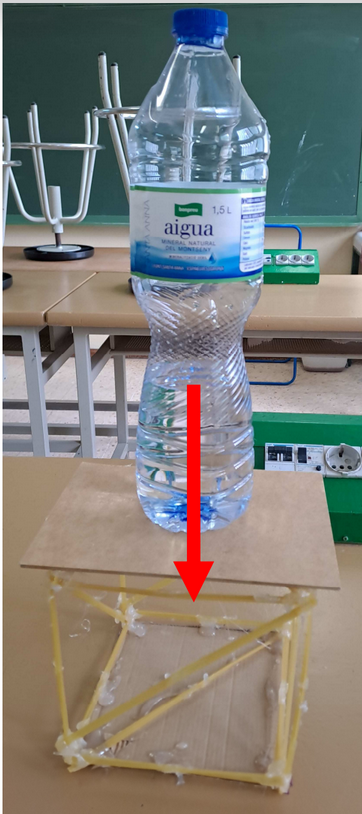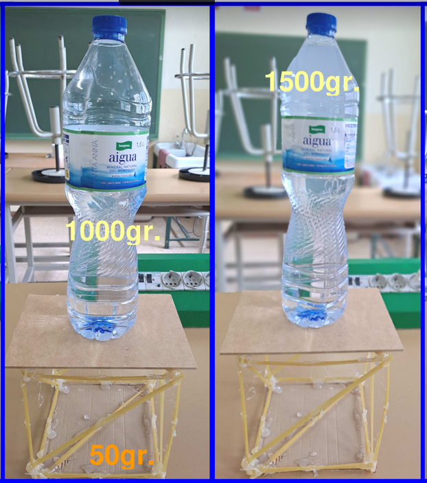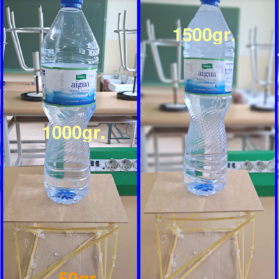 Dins la situació d’aprenentatge de Tecnologia "Disseny amb triangles," l’alumnat de 3r d’ESO ha comprovat al taller com una estructura realitzada amb material molt lleuger i trencadís (espaguetis) pot suportar una important càrrega si es fa de manera adequada. El triangle és la forma geomètrica més senzilla que no es deforma quan pateix un esforç i manté la seva estabilitat. L’alumnat ha descobert el poder del triangle, que permet estructures lleugeres que poden suportar 40 vegades el seu propi pes, i la importància de saber matemàtiques en el disseny d’estructures.