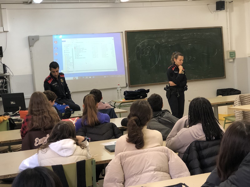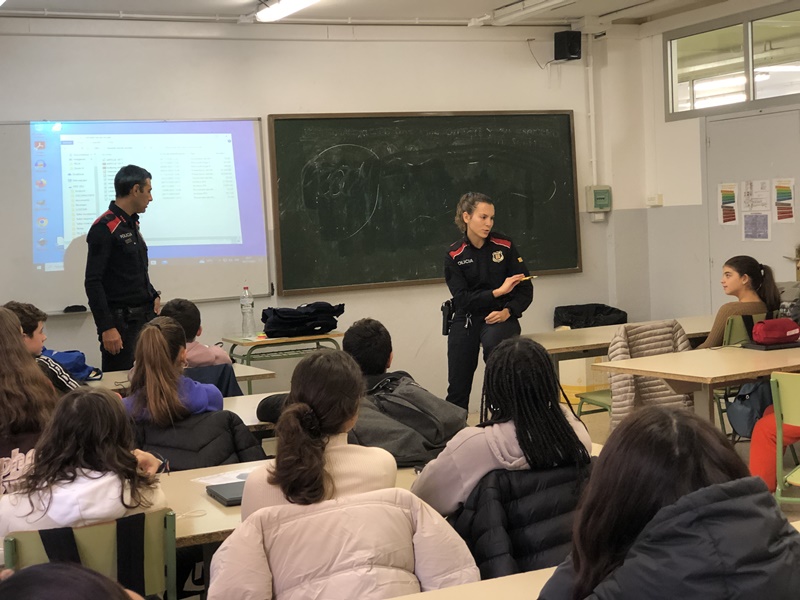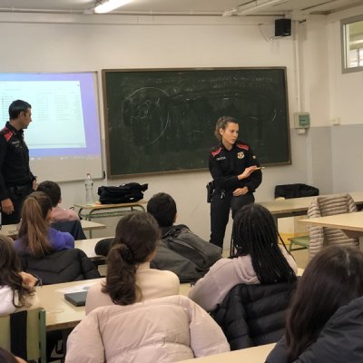 Durant el primer trimestre, dos agents dels Mossos d’esquadra van venir al nostre centre per fer xerrades de conscienciació als alumnes de 1r i 2n d’ESO.