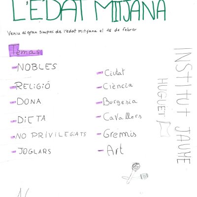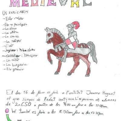 Divendres vinent farem un simposi sobre l’edat mitjana al pati de les moreres, com a cloenda del projecte de l’edat mitjana amb 2n d’ESO. Els alumnes han fet cartells per convidar-vos-hi. No hi falteu!