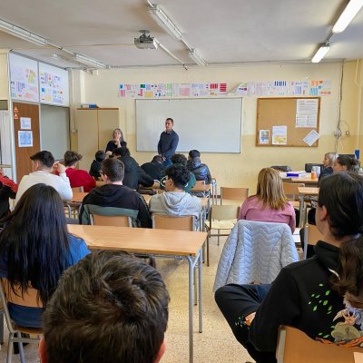 El passat 19 de febrer voluntaris de l'Associació Egueiro van venir al centre a fer una xerrada a alumnes de 1r i 2n del CFGM d'Activitats comercials. Aquesta entitat fa 38 anys que treballa per a persones en risc d'exclusió social.
