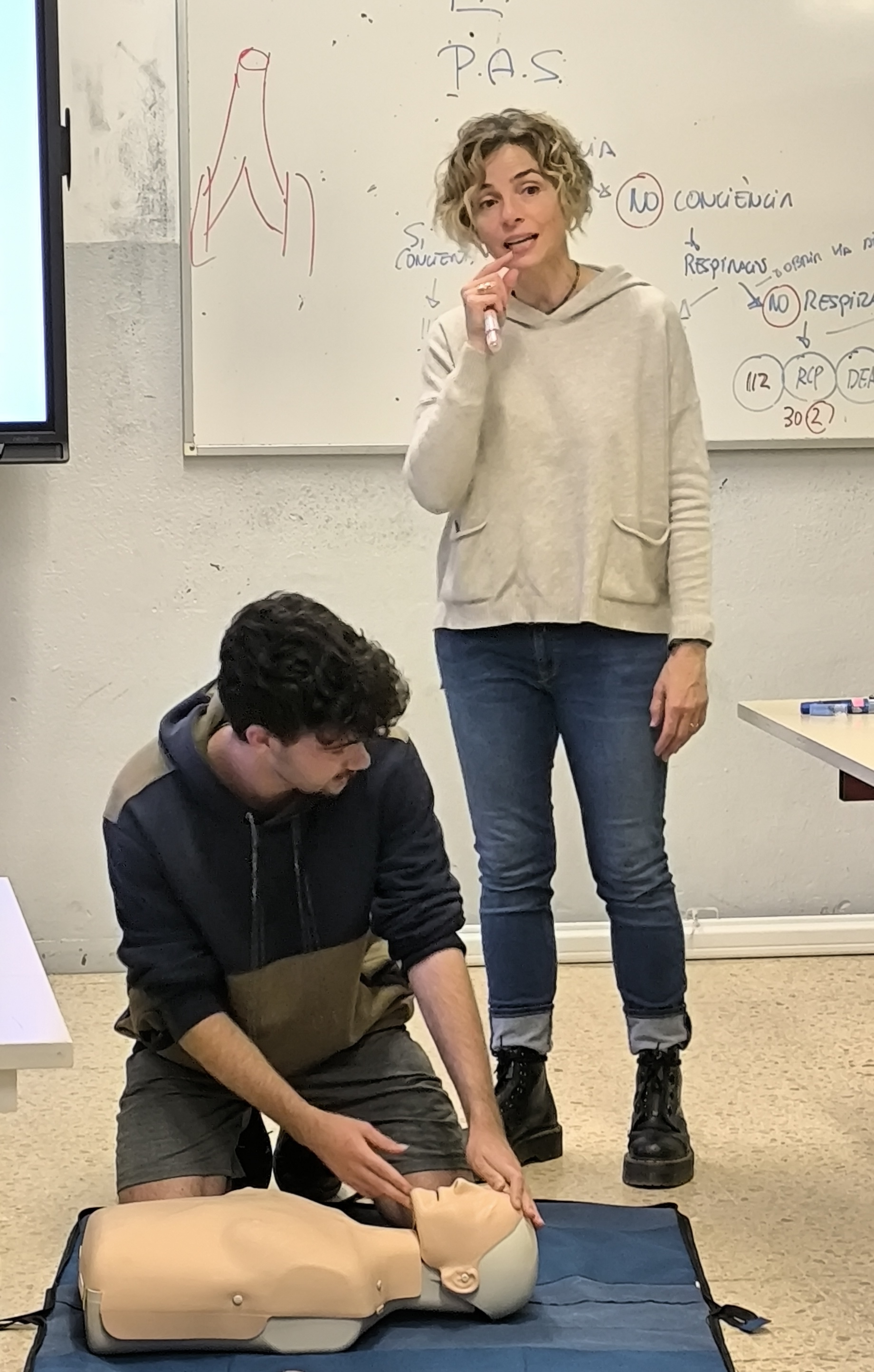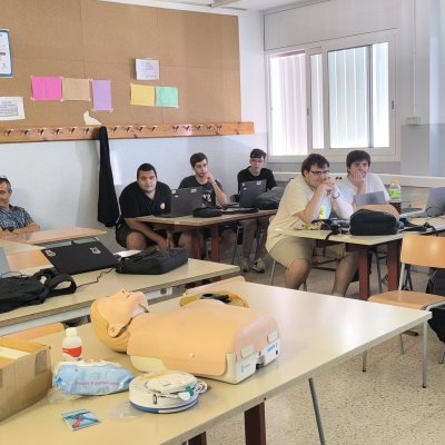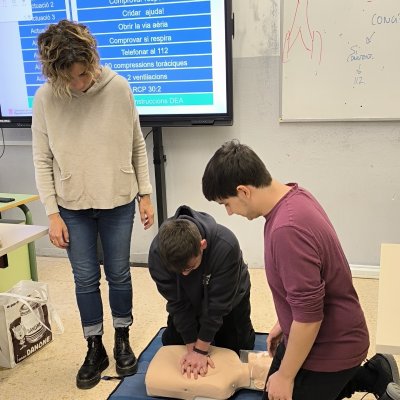 A finals d’octubre els alumnes de 2n del CFGS de Desenvolupament d’Aplicacions Multiplataforma (DAM) van participar en un taller d’iniciació a la reanimació cardiopulmonar bàsica i utilització del DEA. Aquest taller va servir per transmetre la pauta general d’actuació davant una situació d’emergència. Els alumnes van treballar les diferents baules de la cadena de supervivència, la importància de la posició lateral de seguretat i també la reanimació cardiopulmonar bàsica. El curs va ser impartit per la professora Teresa Albaigés de la Família professional de Sanitat del nostre institut.