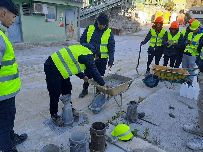 Els alumnes de 1r del CFGM d'Excavacions i Sondatges a finals de desembre van fer assajos de formigó acompanyats per la Remei, tècnica de laboratori de Canteras La Ponderosa. També van fer el con d'Abrams per aprendre a mesurar la consistència del formigó i provetes, que desemmotllaren la setmana següent, per a mesurar-ne la resistència a compressió.