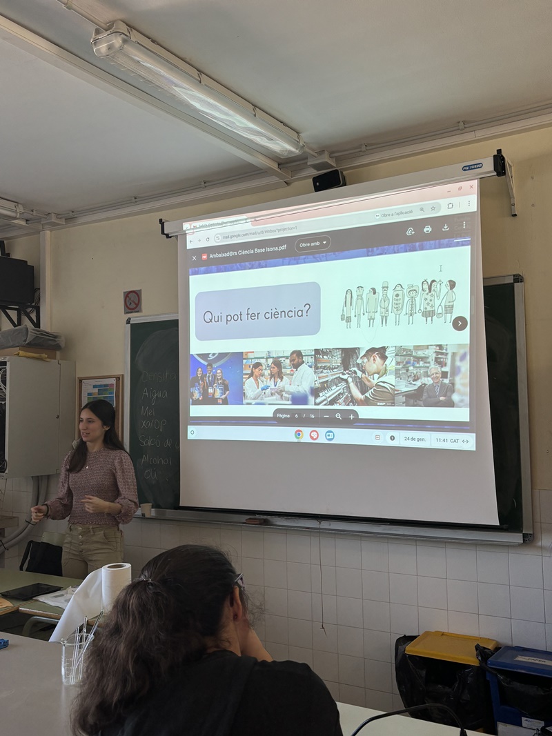 El passat 24 de gener, a l'optativa de 4t d'ESO de Biologia i geologia, vam tenir una visita molt especial gràcies a la iniciativa Ambaixad@rs de la Ciència de la Fundació Catalunya-La Pedrera. La nostra exalumna Isona Ferré, una Science Fellow i exparticipant del programa científic Bojos per la ciència, va fer-nos una xerrada per estimular les vocacions científiques del nostre alumnat científic.