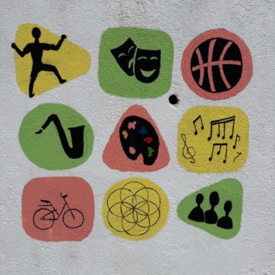 Aquest mes de maig hem acabat el mural de davant de l'Institut que tots podeu contemplar en una millora molt destacada que dignifica l'entorn del centre. Ja podem llegir a la part dreta del mural el títol i el número que li pertany, Murals per la sostenibilitat és el denominador comú a tots els murals dels diferents centres educatius de Valls. El número 8: treball digne i creixement econòmic, és el que correspon a l’Institut Jaume Huguet com a Antiga Escola del Treball i en representació de la seva realitat actual. L'acompanyen els logotips de les entitats que han col·laborat en la realització de l'itinerari de murals educatius. En ser el centenari de l'Institut a l'esquerra del mural hi ha el nom del nostre institut en el disseny actual del centenari. Tots els texts i aquests logos els han pintat els alumnes de segon de BAT de dibuix artístic.