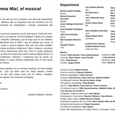Mamma Mia! Quin musical que es va viure al Teatre Principal de Valls els dies 21 i 23 de maig, en sessions de matí per als alumnes d’ESO i, divendres al vespre, per a familiars i públic en general.