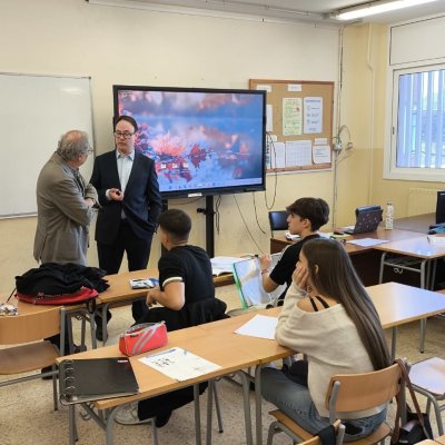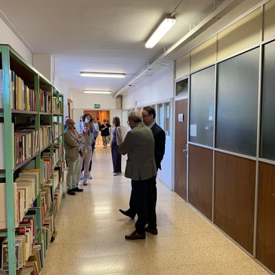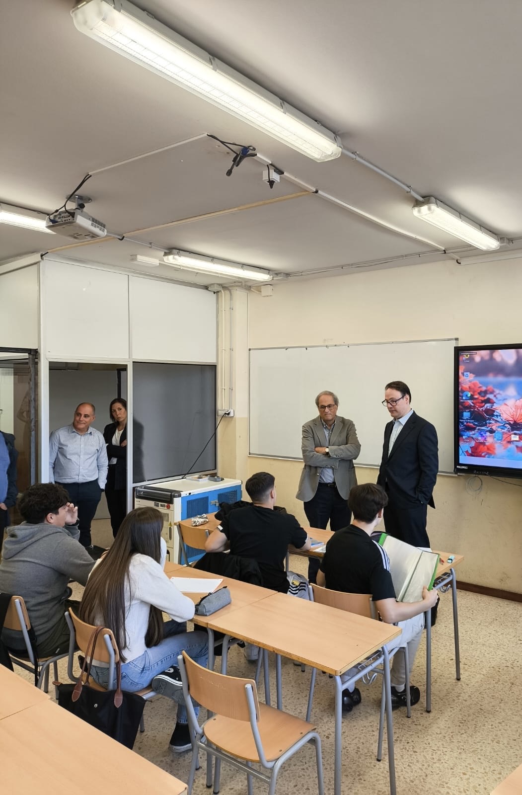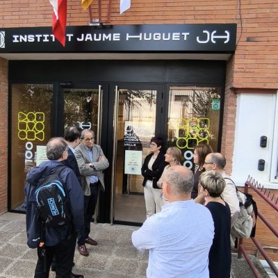 A la seva arribada va ser rebut per l’equip directiu i membres de la comissió del Centenari, els quals el van acompanyar durant la visita dels espais remodelats del centre i algunes aules de cicles formatius.