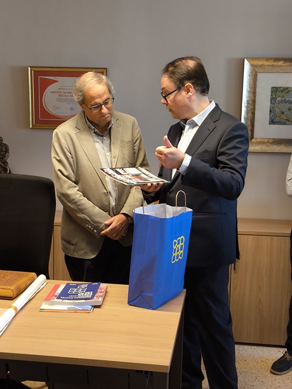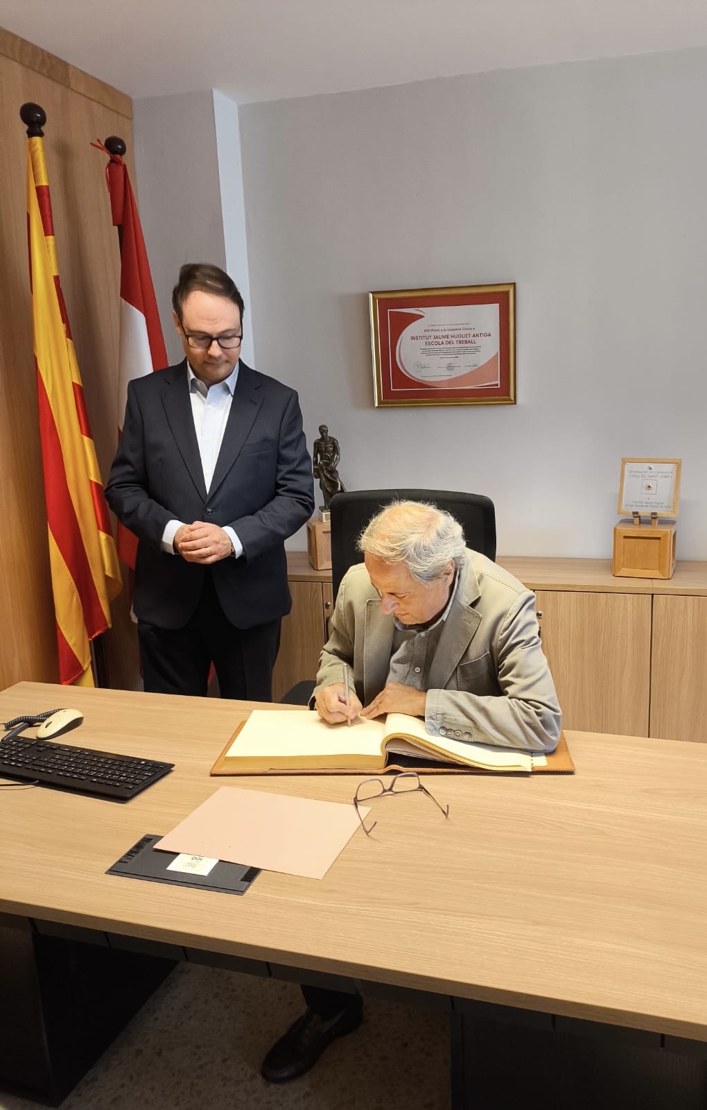 Tot seguit, al despatx del director, signà en el llibre d’honor i va fer un esmorzar de treball amb professors del departament de Llengua catalana per conèixer quina és la seva visió sobre la situació actual de la llengua, tant al centre com en l’entorn dels joves.