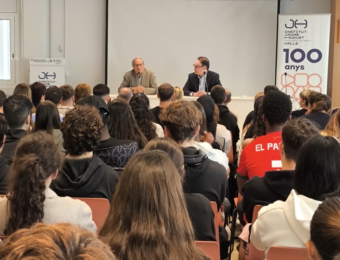 Amb el títol “Llengua i Escola”, el president Torra es va adreçar a l’alumnat de primer de batxillerat i a una representació dels alumnes de la formació professional de l’Institut.