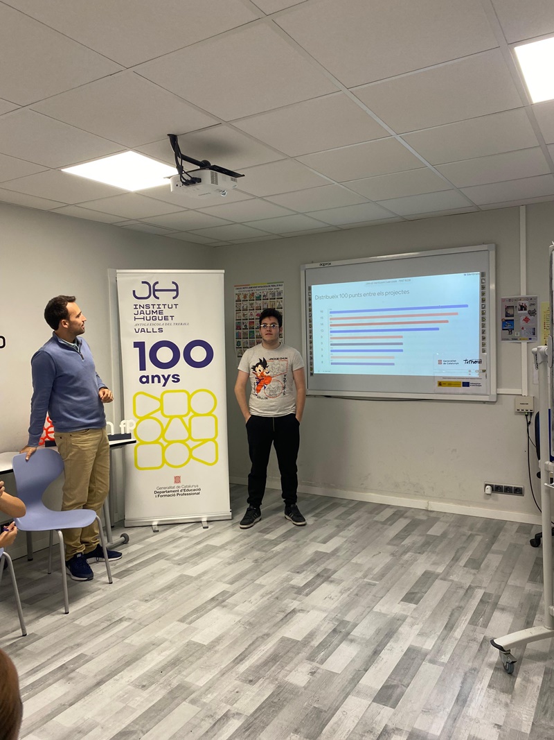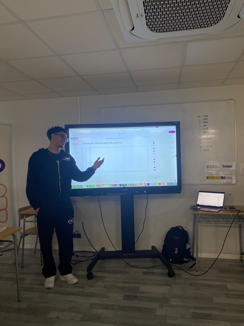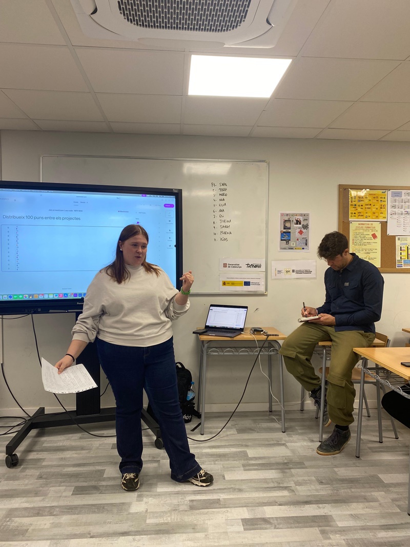 Aquest últim dia el vam dedicar a les presentacions dels projectes i l’alumnat va demostrar un alt nivell d’implicació, creativitat i una evolució molt notable al llarg del procés. A més, van rebre un “feedback”constructiu sobre les seves exposicions, cosa que desitgem que els ajudi a treure encara més partit de presentacions en el futur, tant dels nous projectes que desenvolupin com de qualsevol situació professional en què ho necessitin.