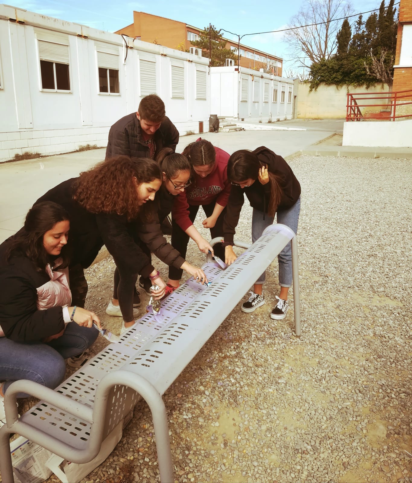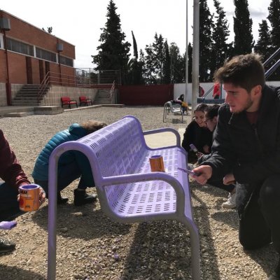 Per altra banda, dilluns 9 de març, es van pintar de color lila quatre bancs del pati. L’Espai Lila, que és la comissió mixta formada per professorat i alumnat que treballa per la igualtat a l’Institut, va ser l’encarregada de posar de color lila els bancs com a símbol de reivindicació feminista. La regidoria d’Acció comunitària, participació i igualtat de l’Ajuntament de Valls va col·laborar en aquesta acció.