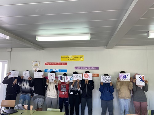 A més, abans del pati, a totes les aules es va llegir el manifest i, a l’aula d’acollida van treballar també entorn d’aquesta data i van preparar-ne cartells reivindicatius.