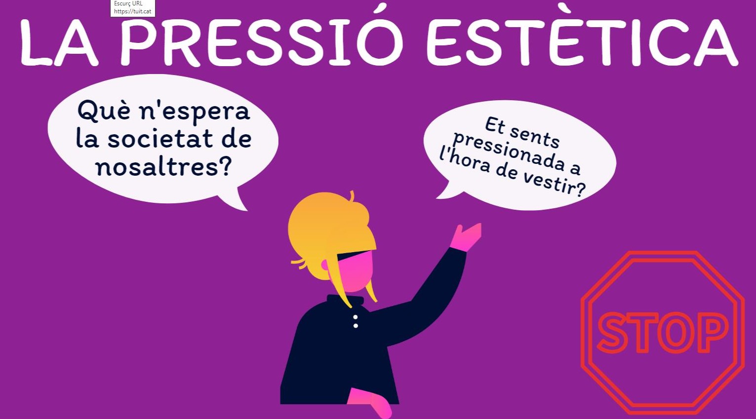 Amb motiu de la commemoració del 8M, Dia Internacional de les Dones, aquesta setmana, s’ha fet a les hores de tutoria un treball al voltant de la pressió estètica: a partir de vídeos i d'aquesta presentació per mirar i exemplificar el tema, s’ha plantejat un debat que ha permès reflexionar sobre un dels temes més problemàtics actualment entorn de la dona.