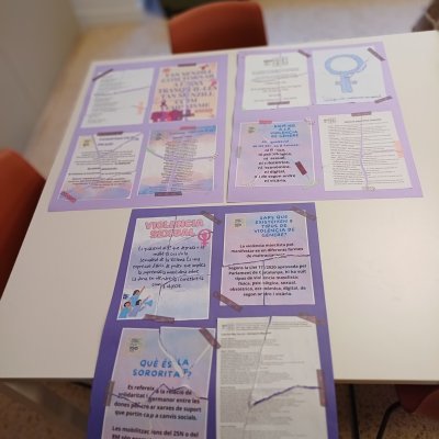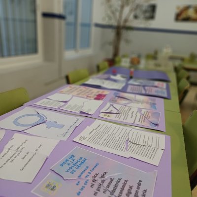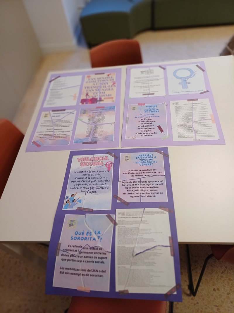 Per arrodonir l’acte, els escolars van penjar els cartells al·lusius al 25N que havien preparat anteriorment als centres.