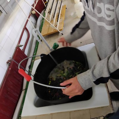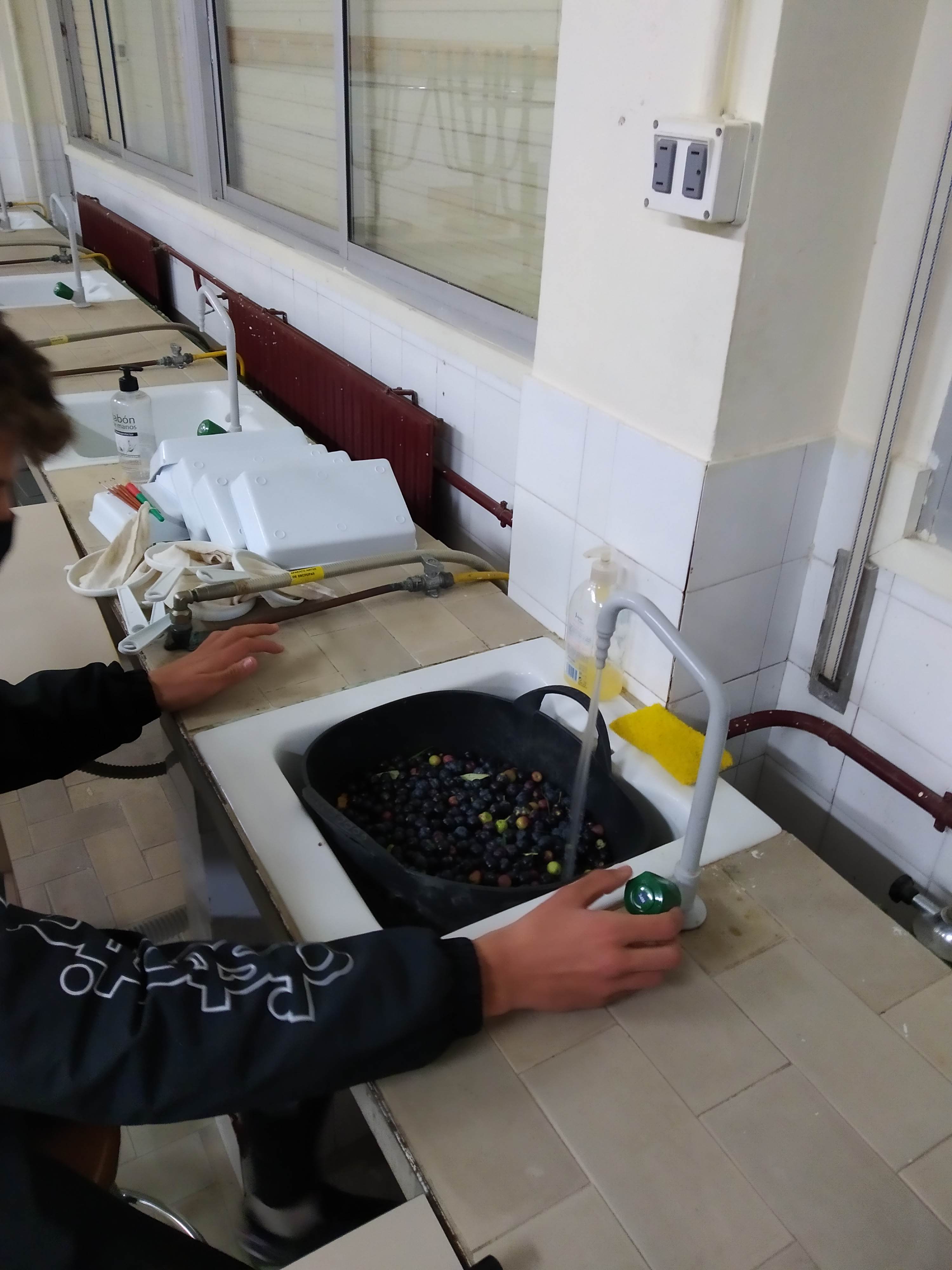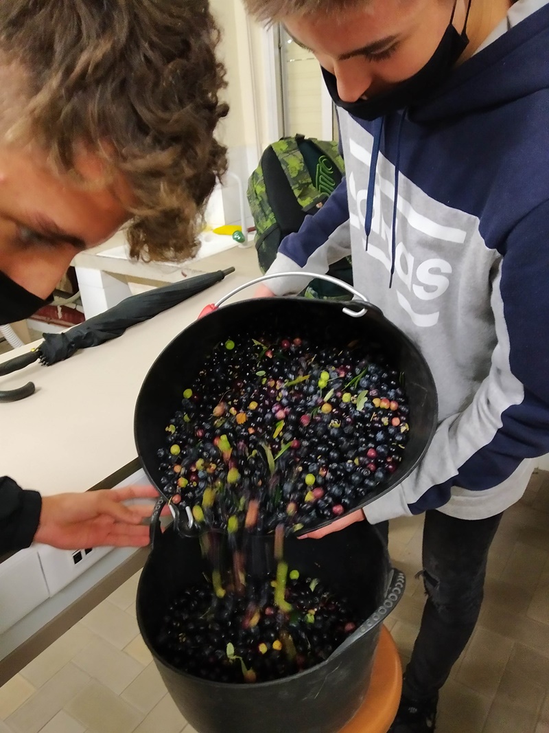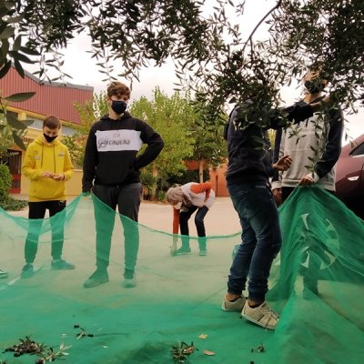 L'alumnat de l'optativa d'Escoles verdes de 3r d’ESO ha collit les olives de l'olivera que tenim al jardí de l'Institut.