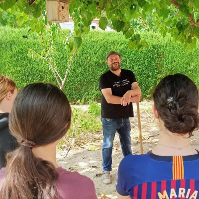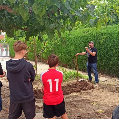 Van aprendre molt sobre el cultiu dels calçots, quins són els criteris que regula la IGP del Calçot de Valls i els va donar consells per a plantar els calçots a l'hort de l'institut.