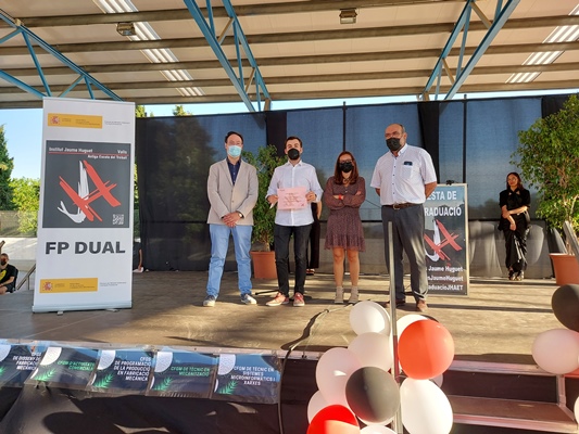 - Família de Fabricació Mecànica. CFGM de Mecanització: JAVIER OLMO GINÈS de 2n i de 1r QUIM PRATS CASES. CFGM de Soldadura i Caldereria: ERIC FERNÁNDEZ de 2n i JUAN MANUEL ECHEVERRI GÓMEZ de 1r. CFGS de Disseny en Fabricació Mecànica: de 1r DÍDAC AMORÓS FERRÉ i JACOB LOZANO ARJONA de 2n, CFGS de Programació de la Producció en Fabricació Mecànica: de 1r ADRIÁN ABAD MARTÍN i de la Família Professional d’Instal·lacions i Manteniment: del CFGS de Mecatrònica Industrial de 1r OSCAR PUIG AGUILAR.