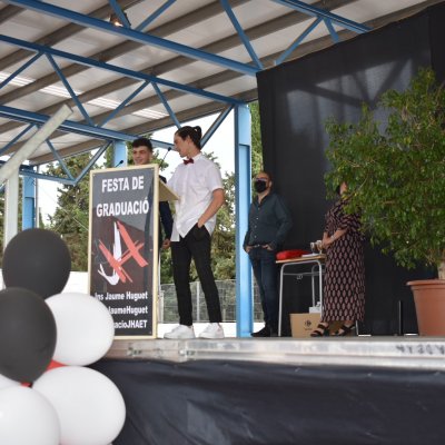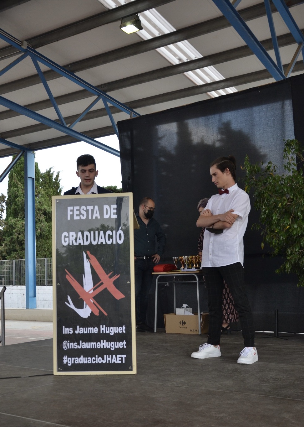 L’acte de graduació també ha sigut diferent, començant pels presentadors, que enguany no han pogut ser dos alumnes, com els darrers cursos, sinó que han sigut dos dels tutors, la Lilian Borràs Vallverdú i el David López Córdoba, que s’han encarregat de conduir una gala que ha tingut com a fil conductor l’humor d’una entrega de "Premis Jaumets" que han servit per recordar algunes anècdotes i els millors moments passats per aquests alumnes durant el Batxillerat.