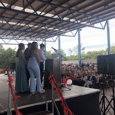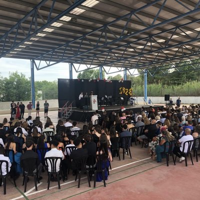 El passat 16 de juny es va celebrar la cerimònia de graduació dels grups de 4t d’ESO a la pista coberta de l’Institut. La Valeria Casado i l’Isaac Tiscar van conduir la gala, que va començar amb la interpretació d’una peça per part de l’orquestra de l’Institut.