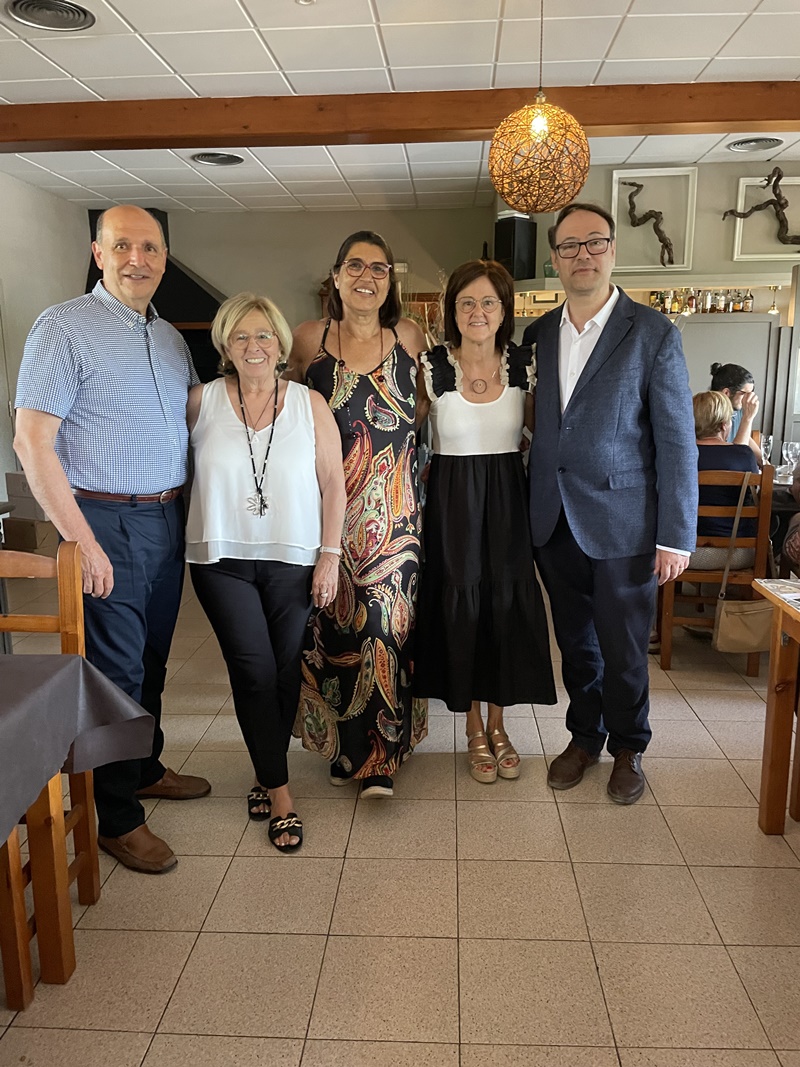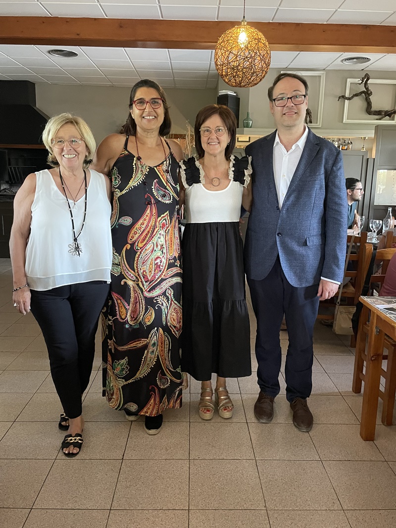 L’últim dia del curs, més de 100 persones, entre professors, exprofessors, membres del PAS i familiars, ens vam reunir en el tradicional dinar de final de curs durant el qual vam celebrar l’acte de jubilació de les professores Anna Grau, Kira Menén i Montse Montalà.
