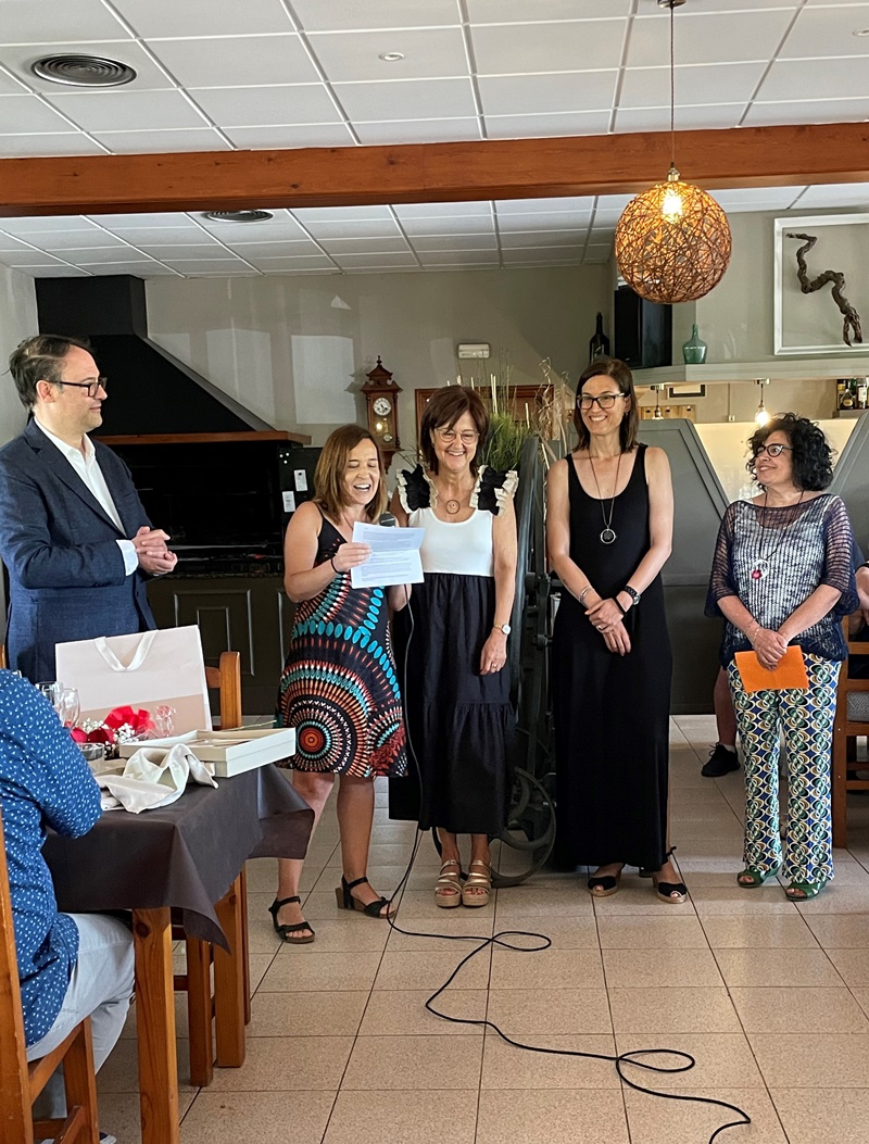 Al final del dinar, el director, Josep M. Soler, va adreçar unes paraules a cadascuna d’elles i els va lliurar una placa en nom del centre i un regal de part de tots els companys i excompanys. L’acte es va acabar amb les emotives paraules que diverses representants de cadascun dels departaments els van dedicar i que van servir per repassar la seva trajectòria professional i humana a l’Institut.