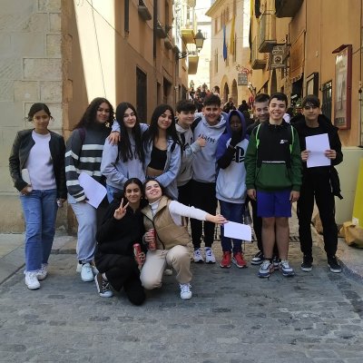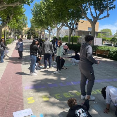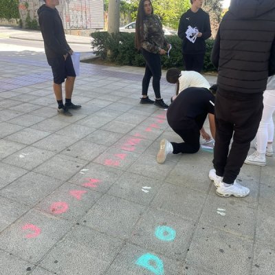 3r ESO: després del pati, els grups de 3r van fer una activitat cultural i literària al passeig de l’Estació de Valls, on van pintar a terra versos dels poetes dels quals enguany commemorem l’Any, Vicent Andrés Estellés i Joan Salvat-Papasseit.