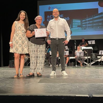 I encara va hi va haver temps per repartir un diploma de graduació molt especial a la professora Rosa Manchobas, que durant els darrers anys, des de la comissió de Festes, s’ha dedicat a muntar totes les graduacions de final de curs; se li va fer aquest reconeixement amb motiu de la seva jubilació. Gràcies per tot, Rosa!