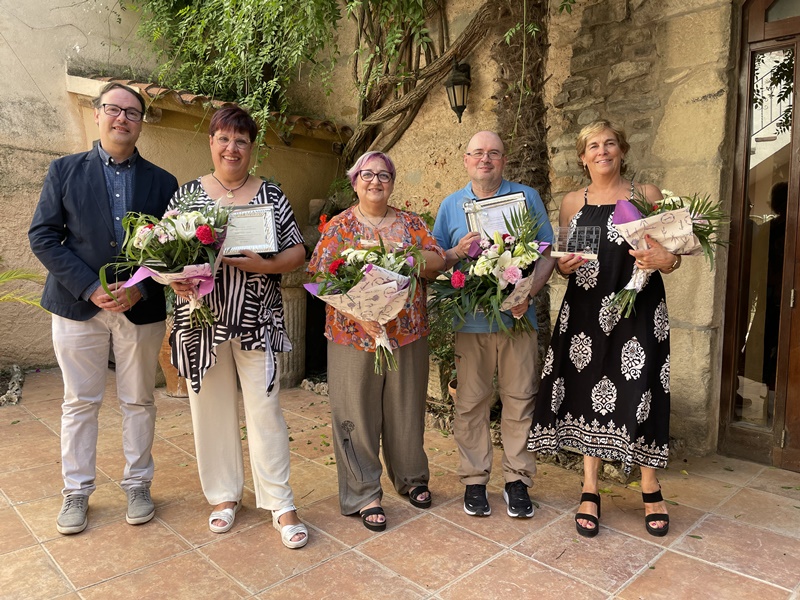 Després del dinar, el director, Josep M. Soler, els va lliurar un record en nom del centre i el regal de part de tots els companys i excompanys. Tot seguit, representants de cadascun dels departaments els van dedicar unes paraules rememorant la seva trajectòria professional i humana a l’Institut.