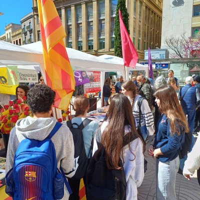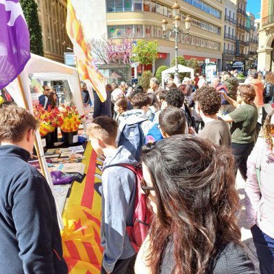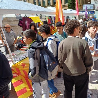 -1r d’ESO i els alumnes d’ensenyaments postobligatoris, després del pati, van anar a passejar pel centre de Valls per veure les parades de llibres i roses.