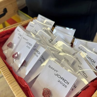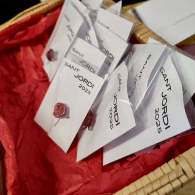 L’alumnat de 2n d'Activitats comercials ha posat una paradeta de venda a l’institut durant la diada de Sant Jordi. Han venut uns detalls amb el símbol de la rosa, confeccionats en col·laboració amb els companys del cicle d'especialització en Fabricació additiva, que han agradat moltíssim, i a l’hora del pati ja ho tenien pràcticament tot venut.