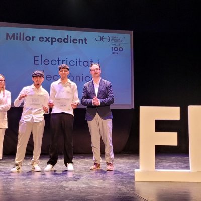 -Família Professional d’Electricitat i Electrònica: SOHAIB LOUKILI, del PFI d’Auxiliar de muntatges d’instal·lacions elèctriques, aigua i gas; SAMUEL FELIPE SUAREZ CRUZ, del CFGM d’Instal·lacions elèctriques i automàtiques.