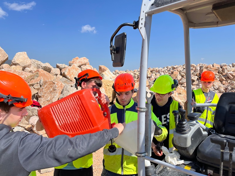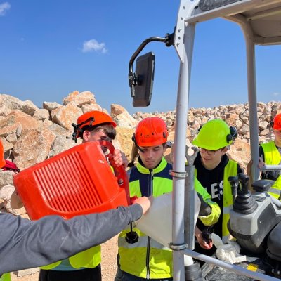 També van conversar amb alumnes i professors del primer curs del cicle formatiu. Aquests dies, durant les setmanes de pràctiques que periòdicament cursen, dins del mòdul d'operació i maneig de maquinària d'excavació, fan servir diverses màquines de moviment de terres. Els alumnes del segon curs, ja no eren a les instal·lacions de l'empresa, sinó que tots estan completant la seva formació dual en diverses empreses amb un contracte o beca formativa. Aquesta alta inserció laboral ha estat valorada molt positivament pel gerent del Gremi d'Àrids de Catalunya Jaume Puig Canal, que va destacar la bona relació entre l'empresa i l'Institut com a factor d'èxit d'aquesta iniciativa, ja que s’ha posat a l'abast del nostre entorn la primera promoció d'alumnes del CFGM d'Excavacions i Sondatges que acabarà enguany.