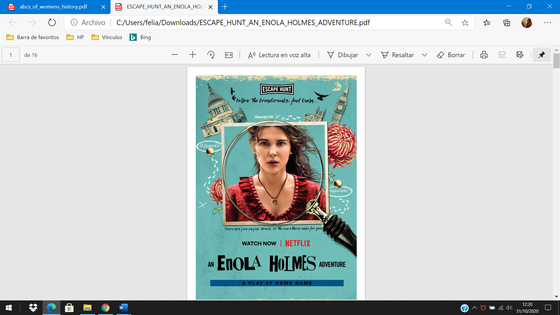 And what about fiction? Another activity is about the character Enola Holmes. This time the students must follow the clues to solve an amazing Escape Room through the streets of London to find Enola the rebel Lady Detective who is trying to open her own agency competing in a man’s world.