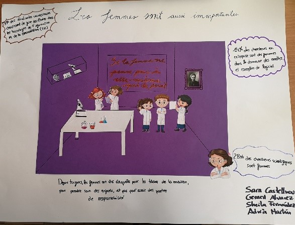 Les élèves de la 1ère année de Baccalauréat vont travailler la vision féminine du monde moyennant une bande dessinée (B.D.). Les lycéens vont créer une infographie d’une femme importante dans l’histoire de France en format vignette.