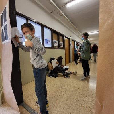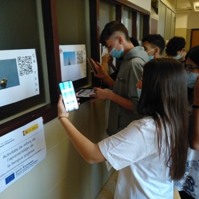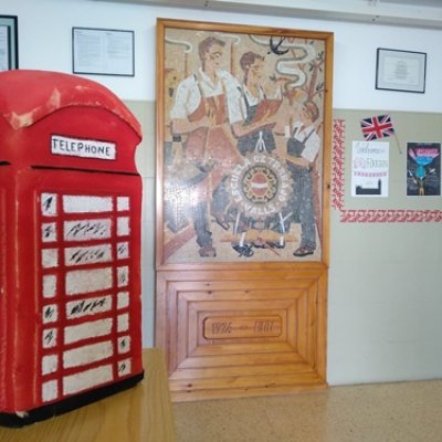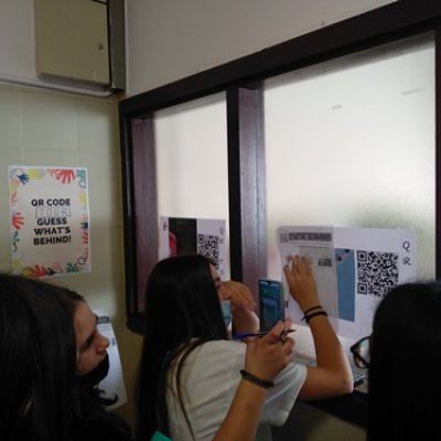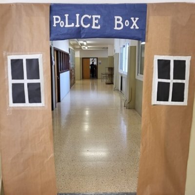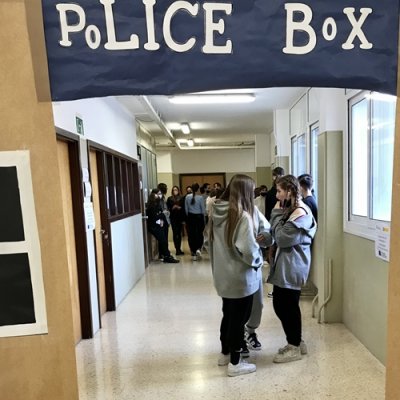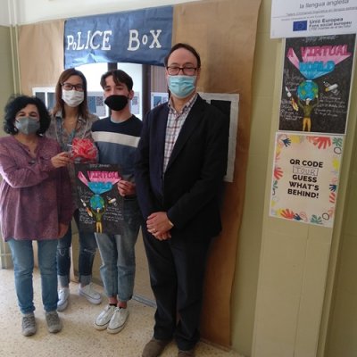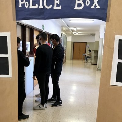 We have decorated the school with the aim of having fun and bringing foreign languages to a real context. There is an exhibition of some representative elements of English speaking countries through a virtual Tardis which means entering in another dimension. The exhibition shows parts of typical landmarks that the students have to discover or, if not, look at the QR for information.