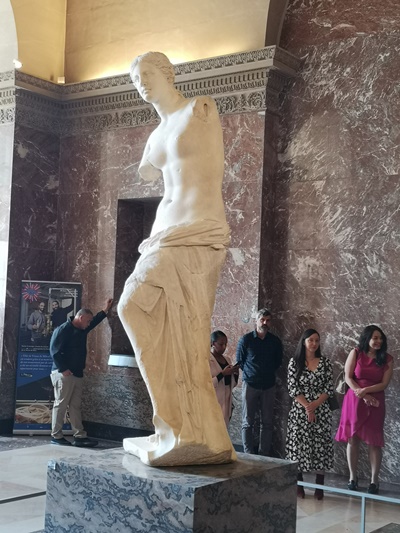 El tercer dia va ser el torn del Museu del Louvre, on van veure, entre d'altres pintures i escultures, la Mona Lisa, i de la Sainte-Chapelle, la capella gòtica plena de vitralls on estan representades diverses escenes de la Passió de Jesucrist i que fou el palau dels reis de França del segle X al segle XIV. Després de dinar al barri llatí, els alumnes van descobrir tot passejant l'Hôtel de Ville (Ajuntament de París), el Centre d'art Georges Pompidou, la plaça de la font d’Stravinsky i el barri comerciant de Châtelet-Les Halles.