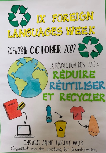 La IX Setmana de Llengües estrangeres està dedicada enguany a les 3Rs: Reduir, Reutilitzar i Reciclar. Els cartells així ens ho anuncien.