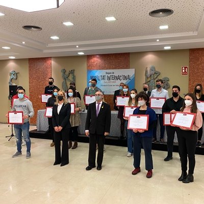 Juntament amb l'alumne Pablo Morales, acompanyat pel director de l'Institut Jaume Huguet, Josep M. Soler, a l'acte del lliurament hi va assistir el Sr. Gustau Barbat i Gili i la seva germana Montserrat, fills de l'empresari vallenc Ramon Barbat i Miracle i patrocinadors de les beques que reben els alumnes Erasmus de formació professional.