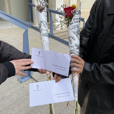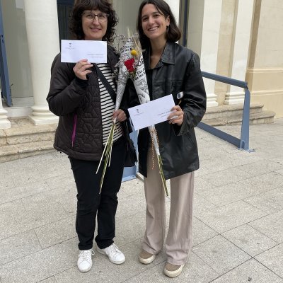 L’acte va ser presidit per l’alcaldessa de Valls, que va lliurar els premis juntament amb la regidora de cultura Bàrbara Flores. Com que la Isona no va poder assistir a l’acte, el premi el va recollir la seva mare i avui hem fet la foto a totes dues guanyadores amb la rosa que els van donar.