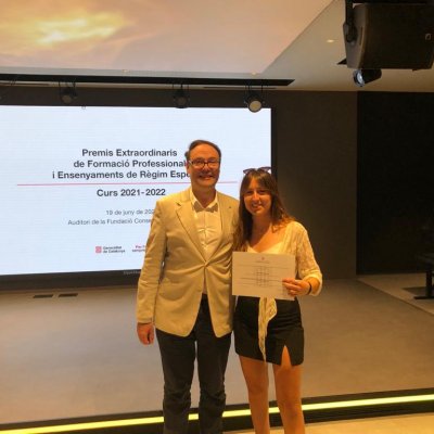 La nostra alumna del CFGS d’Ensenyament i Animació socioesportiva Aina Palau Alvaro, que va obtenir una qualificació de 9,65, va recollir el premi corresponent a la família professional d'Activitats físiques i esportives.