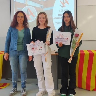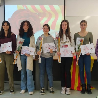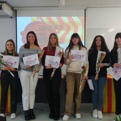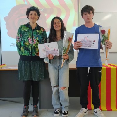 Després les caps dels dos departaments de llengües han lliurat els premis als millors treballs de narrativa i de poesia en llengua catalana i castellana i que trobareu aquí. Després del lliurament dels premis de poesia, les alumnes de l'optativa d'Arts Escèniques de 1r de Batxillerat Nawal Labidi, Jana Freixes i Anna M. Andreychenkov han recitat els poemes guanyadors.