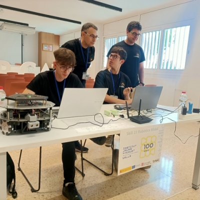 Els alumnes Joan Pol Magrané i Jaume Oller de 2n curs d’automàtica i robòtica industrial han estat els participants del nostre centre, amb el professor Raül Vidal com a tutor. Han aconseguit classificar-se en segona posició, després d’una competició molt disputada, i amb reptes que cada any es presenten més complicats.