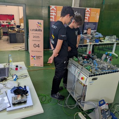 Jaume Oller i Joan Pol Magrané, alumnes de segon de CFGS d’automatismes i robòtica industrial, han quedat en tercera posició al campionat Catskills de mecatrònica que s'ha fet a l’Institut Narcís Xifra de Girona els dies 4, 5 i 6 de juny.