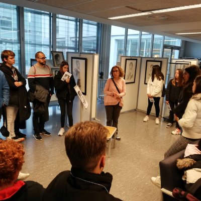 Els alumnes que cursen matèries d’art van fer una sortida a Tarragona el 17 de novembre. Primer van anar a veure l’exposició “Retrats, dibuix i escultura” de la professora de dibuix del centre Mercè Bessó. La mostra és al CRAI Campus Catalunya i consta de tres sèries artístiques, una de 20 retrats integrals de nens dibuixats al carbonet amb algun toc de llapis de grafit, una de 10 retrats de format DIN A 4 que representa rostres d’adolescents i joves -la majoria són alumnes i exalumnes del centre-, i una tercera, amb 9 bustos escultòrics -uns de bronze, els altres de terracota pintada a l’oli.
