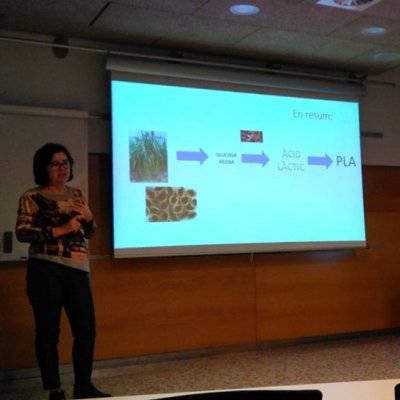 Per acabar les activitats, la Dra. Magda Constantí els va impartir una xerrada amb el títol "De la closca de la nou als bioplàstics", que va servir per fer-los reflexionar sobre l'ús dels plàstics i la problemàtica dels residus. També els va explicar que podem produir substàncies de tipus plàstic a partir de productes naturals com ara les closques de la fruita seca. Aquests procés presentaria l'avantatge d'utilitzar un producte que es rebutja habitualment per convertir-lo en un plàstic nou que seria biodegradable.