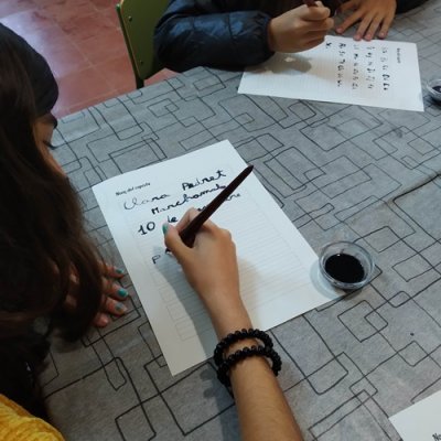 Ahir, va començar a fer les activitats els alumnes de 2n A. Seguint els procediments dels monjos, al bosc, van recollir mostres dels components per fer la tinta i després, a l'aula, van preparar una tinta i van escriure en pergamí. Aquest taller forma part del tema que s’estudia a ciències experimentals sobre mescles i substàncies pures. El producte final també servirà per al projecte sobre l'Edat Mitjana que es farà durant el mes de febrer.