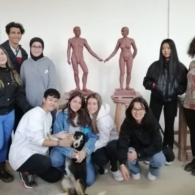 Alumnes de Dibuix artístic i Història de l'Art de 2n de Batxillerat van anar, el dia 3 de maig, a visitar el taller d’escultura de la professora Mercè Bessó. Després de veure un Power Point explicatiu de l'art, de les motivacions internes que porten l'artista a crear en especial escultura, van escoltar les explicacions tècniques dels materials i els procediments escultòrics a través de fotografies. Tot seguit, van poder veure i tocar les obres que estava preparant al taller i també les que ja tenia acabades. Van acabar la sortida amb la visita a una escultura pública a Reus, a la Boca de la Mina.