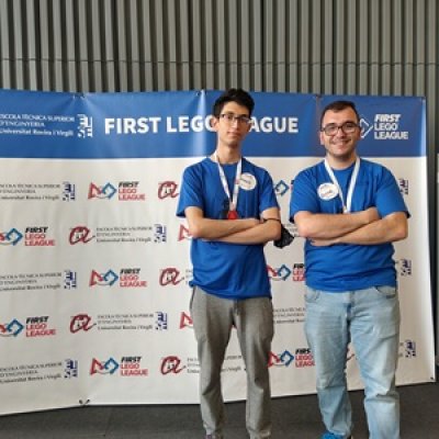 Víctor Giménez i Ayoub Lassagua, alumnes de 1r del CFGS de Desenvolupament d'Aplicacions Multiplataforma del nostre centre, van participar com a voluntaris a la First Lego League Reus 2022 el dia 14 de maig.