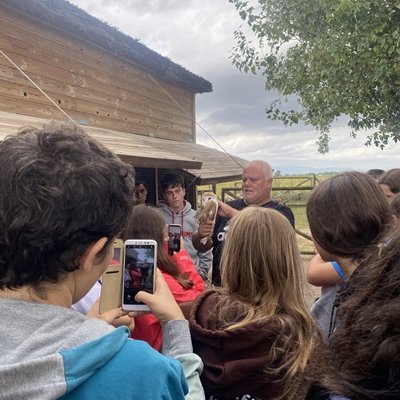 Reprenent les aus, ens hem dirigit a Plegadís −un centre d’educació ambiental multidisciplinari− on hem dinat. La primera idea era anellar ocells i poder-los identificar, però a causa de la pluja les xarxes que atrapen els ocells no es podien posar, de forma que hem fet una iniciació a l’anellament d’ocells identificant els materials i els procediments. Just abans de marxar, hem visitat les diferents aus que tenen en recuperació, entre elles majoritàriament hem trobat espècies de mussols, òlibes i ducs. Alguns feien por i tot!